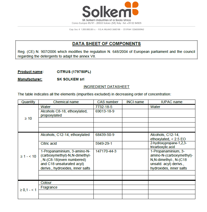 Výrobce: SK SOLKEM INDUSTRIES SRL, Corso Europa 85-91, 20033 Solaro - Milano (ITALY), info@sksolkem.com