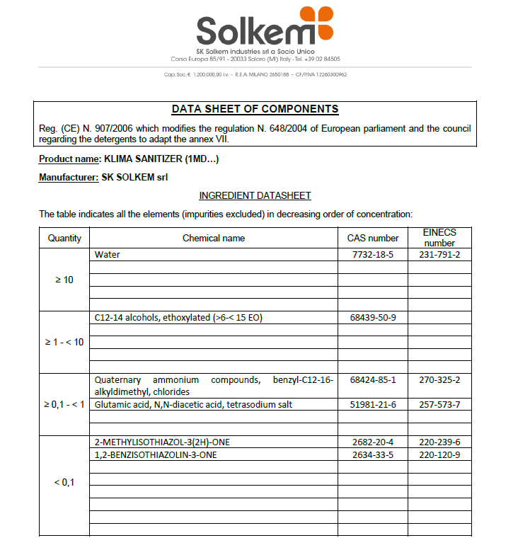 Výrobce: SK SOLKEM INDUSTRIES SRL, Corso Europa 85-91, 20033 Solaro - Milano (ITALY), info@sksolkem.com