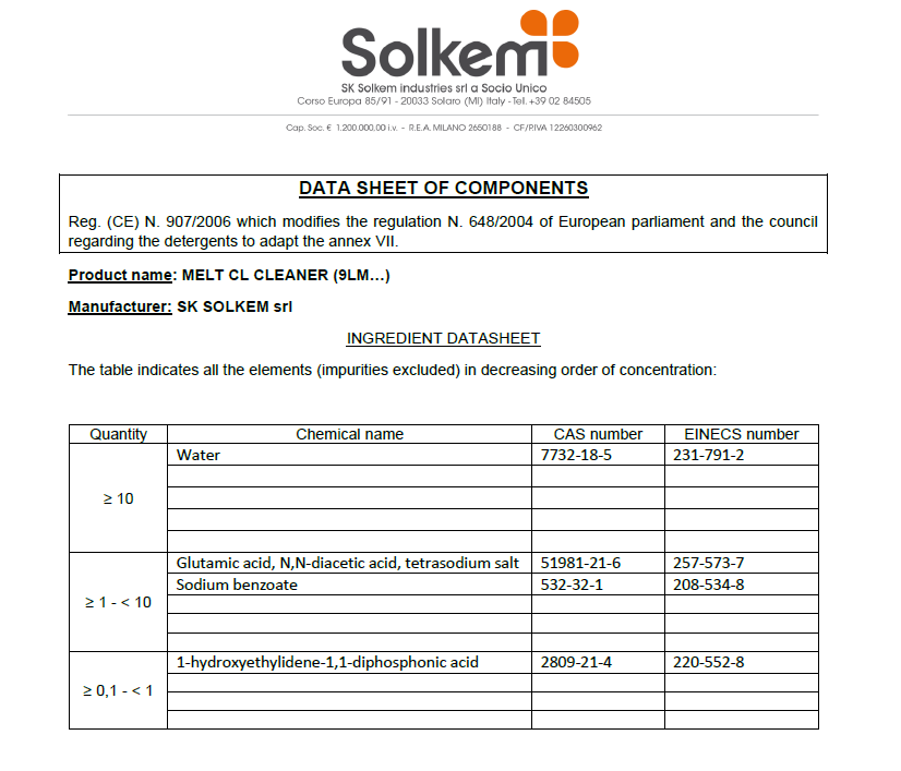 Výrobce: SK SOLKEM INDUSTRIES SRL, Corso Europa 85-91, 20033 Solaro - Milano (ITALY), info@sksolkem.com