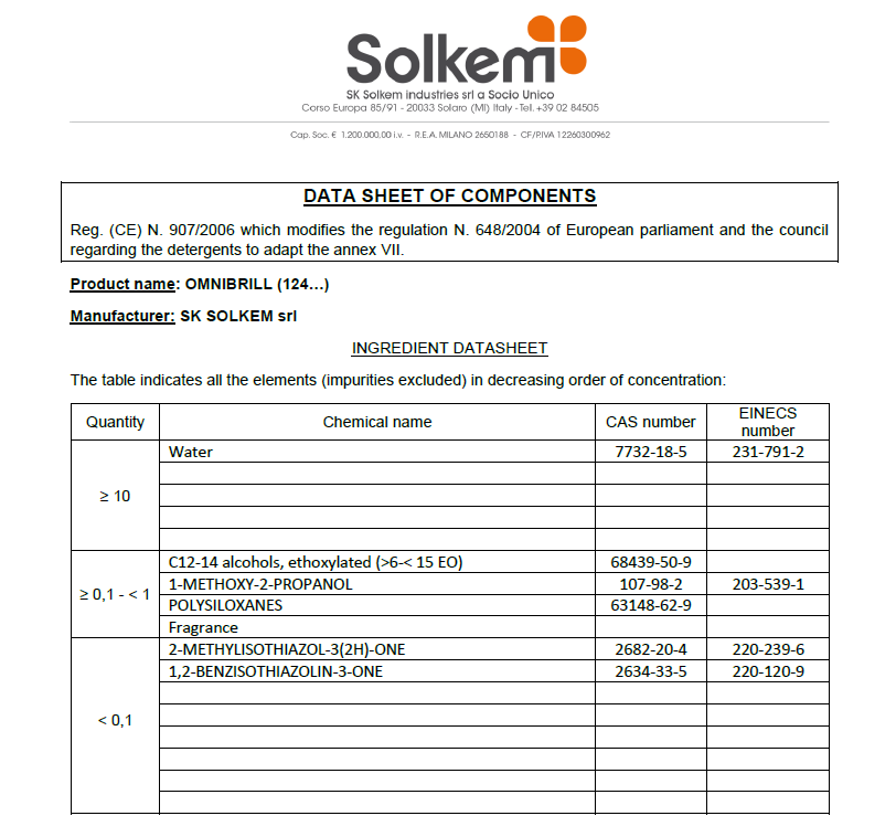 Výrobce: SK SOLKEM INDUSTRIES SRL, Corso Europa 85-91, 20033 Solaro - Milano (ITALY), info@sksolkem.com